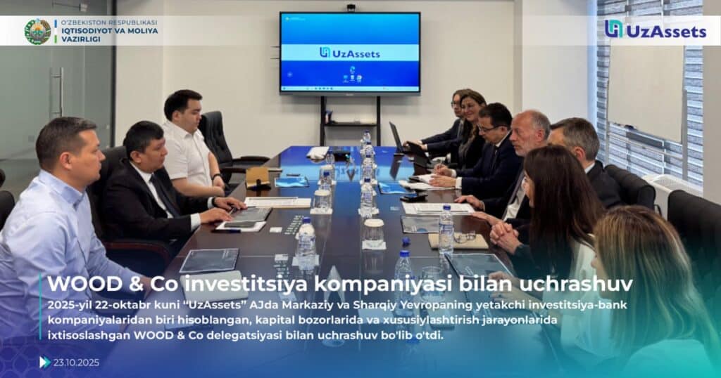 2025-yil 22-oktabr kuni “UzAssets” AJda Markaziy va Sharqiy Yevropaning yetakchi investitsiya-bank kompaniyalaridan biri hisoblangan, kapital bozorlarida va xususiylashtirish jarayonlarida ixtisoslashgan WOOD & Co delegatsiyasi bilan uchrashuv bo‘lib o‘tdi.
